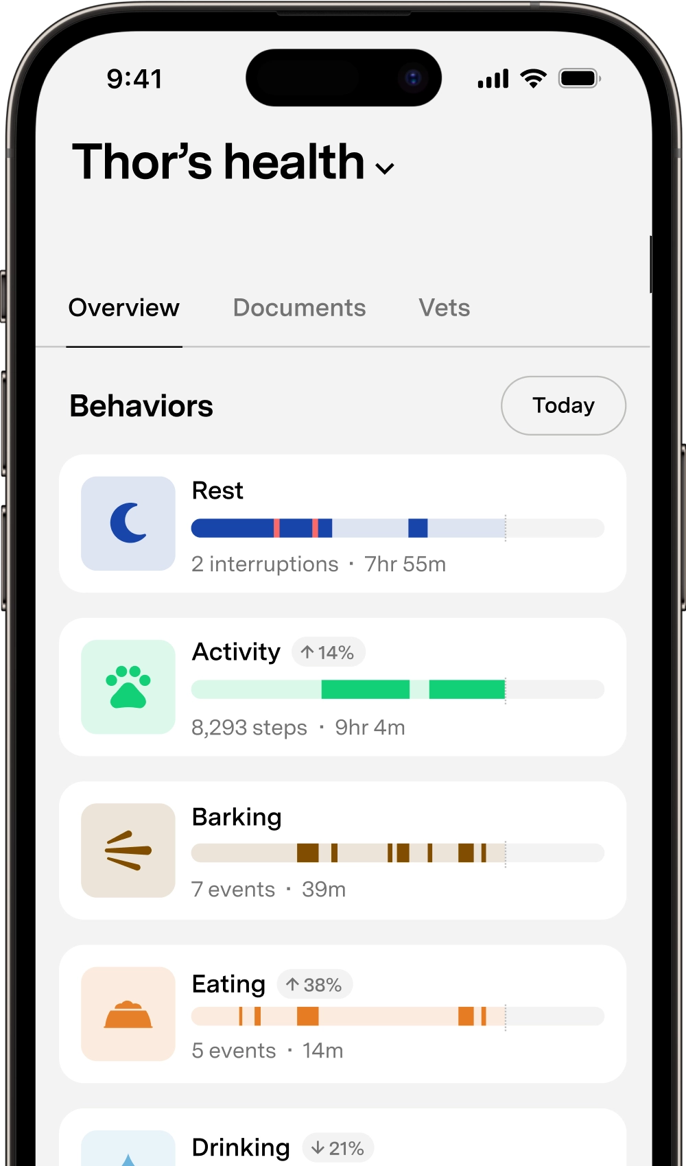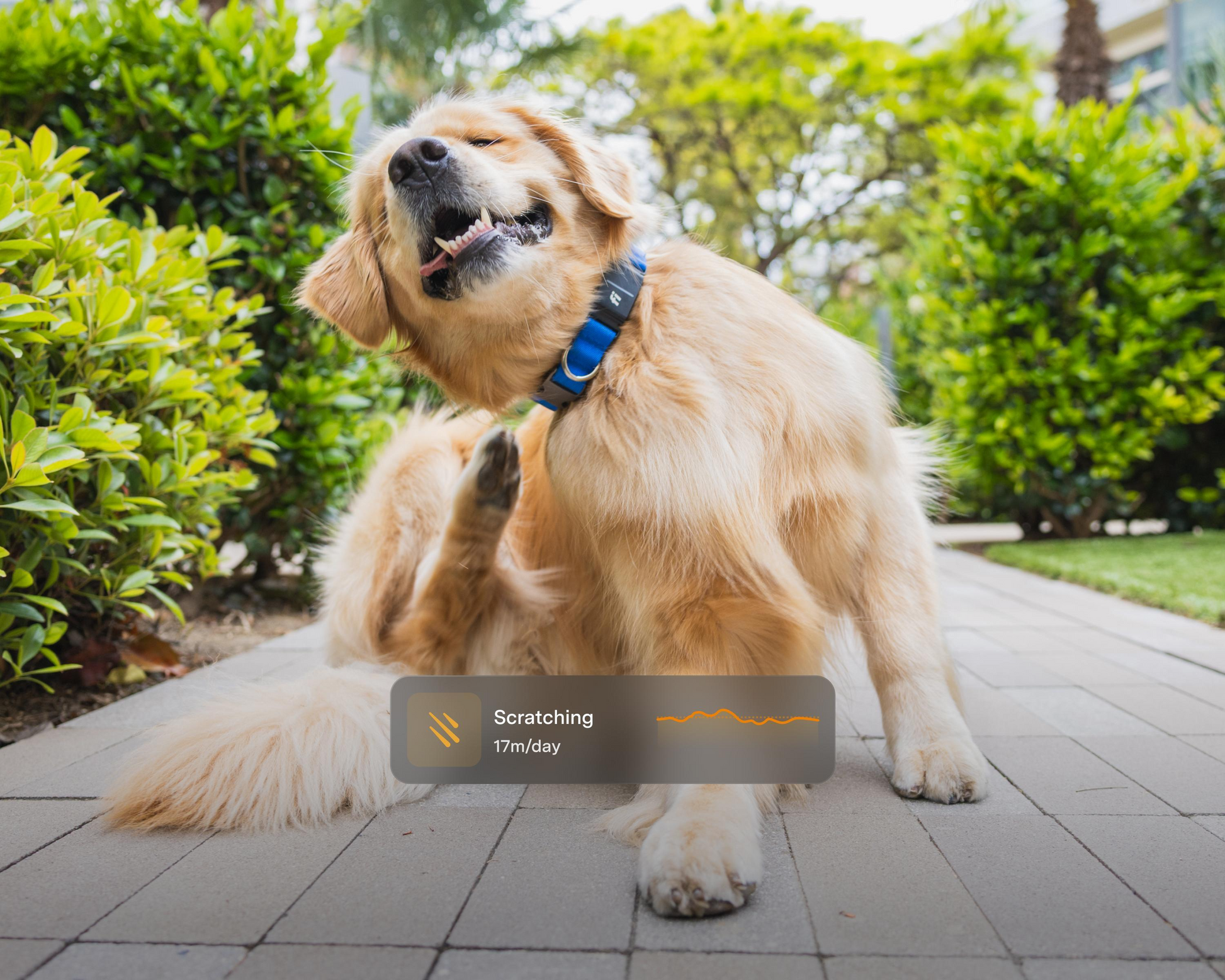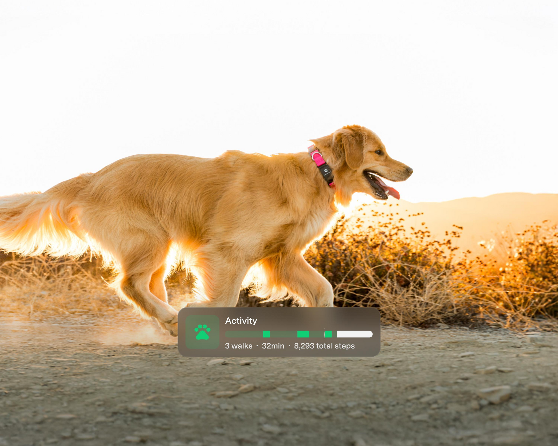 Yes. The collar tracks daily activity, sleep patterns, and behaviors such as walking and resting to help you monitor wellness.