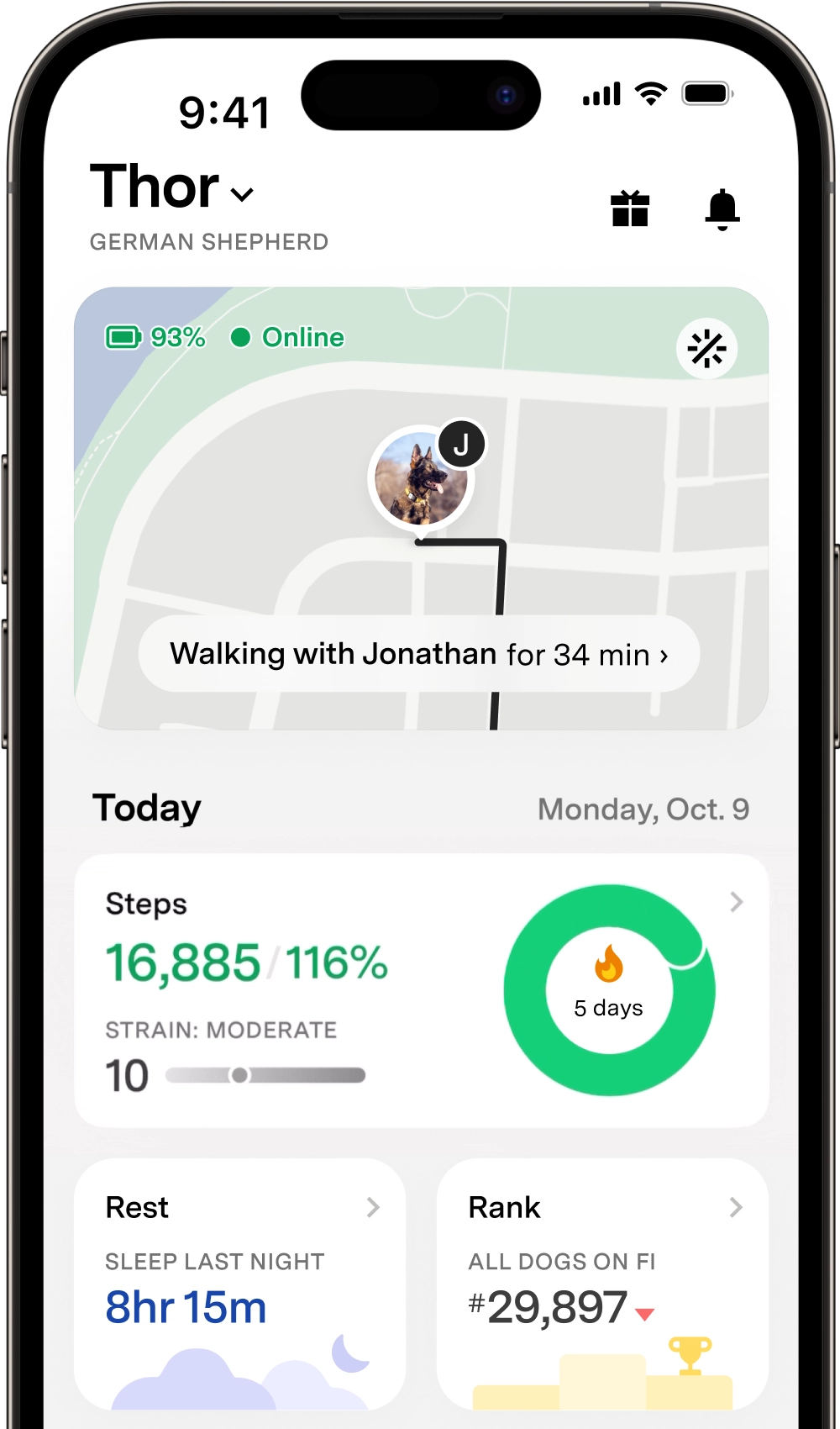 Yes. Fi offers Apple Watch integration, allowing you to check your dog’s location and activity on your wrist.